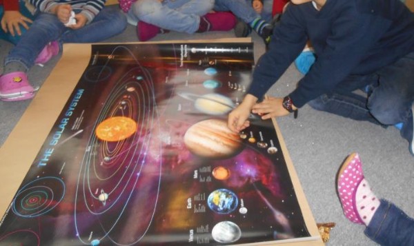 Der erste Schritt in der Vorbereitung dieses Projekts, d.h. der Beschäftigung mit dem Thema Weltraum in mehreren Bildungsbereichen und Aktivitäten über einen zunächst unbestimmten, aber längeren Zeitraum, bestand zunächst in der Anerkennung des Themas als relevant aus der Perspektive des Kindes. Oder in den Worten einer unserer Erzieherinnen: „Also, jetzt müssen wir aber echt was machen!“