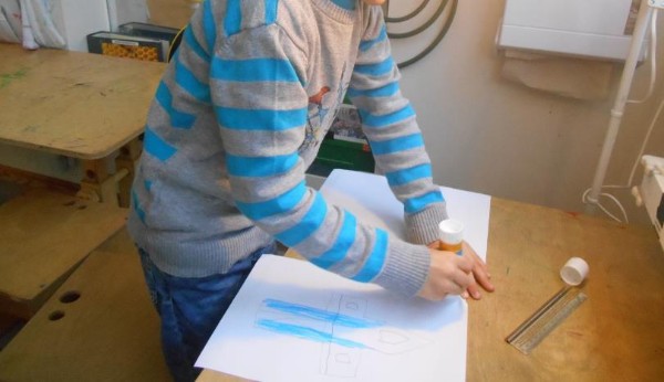 Neo: „Erst müssen wir vorzeichnen. Und dann basteln! Aber das muss ne rote Spitze haben.“