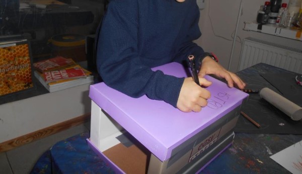 Jakob: „Dürfen Lou, Neo und ich darein gehen? Aber wir sind so aufgeregt. Können wir bitte jetzt mit dem Basteln anfangen.“