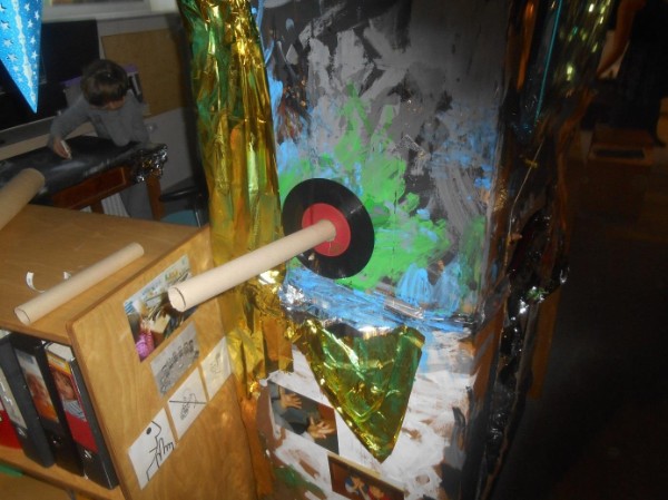 „Ich mach ein ganz großes Raumschiff“, erklärt Neo und beginnt mit ganz genauen Vorstellungen die Gestaltung seiner massiven Pappröhre.